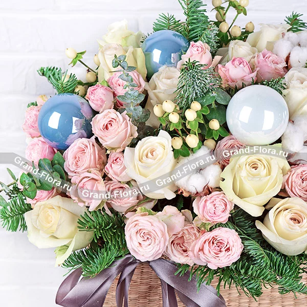 ОТЗЫВЫ О БУКЕТЕ «Зимнее счастье - корзина с кустовыми розами и хлопком»
